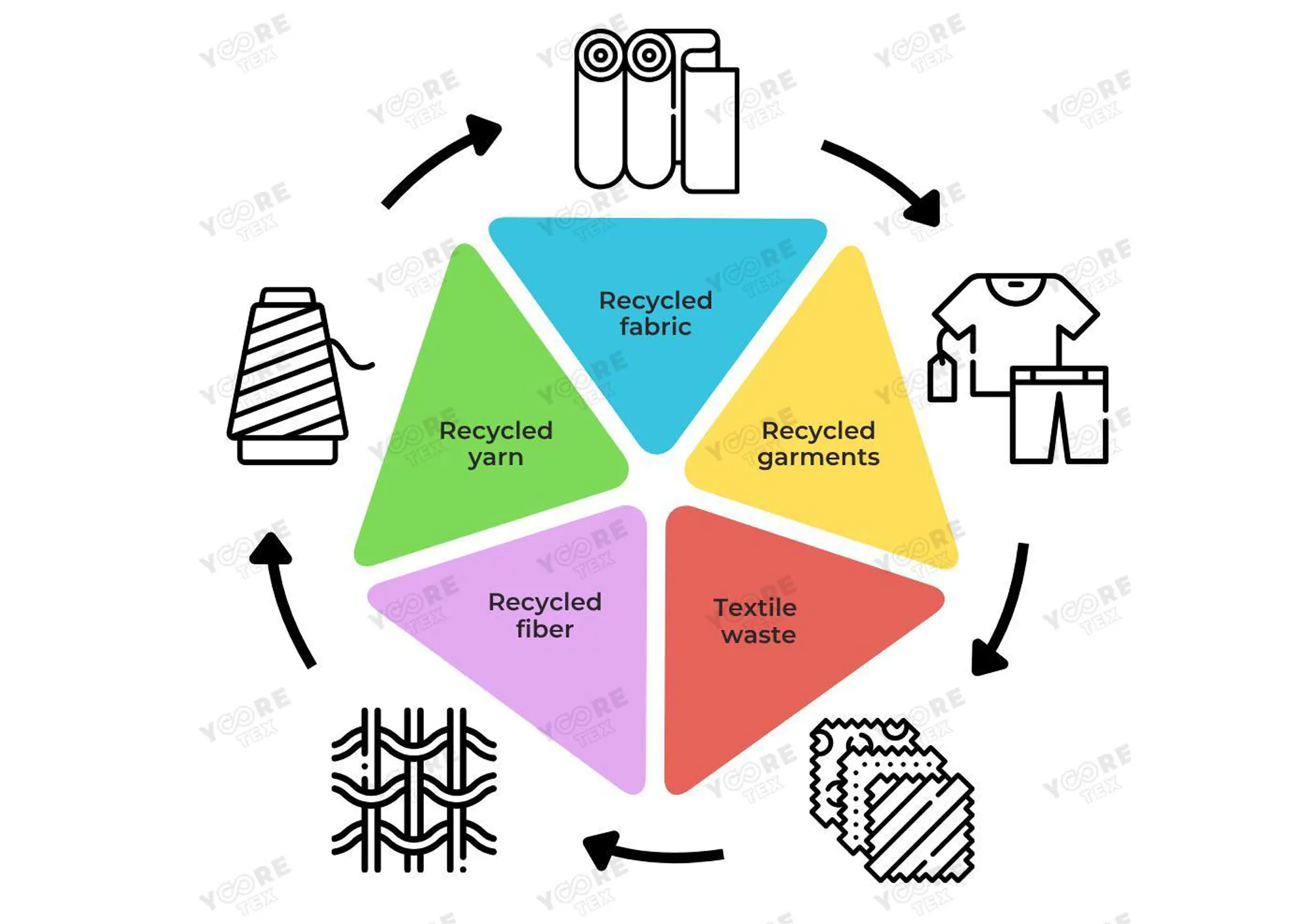 Yooretex a été créée pour relever un défi mondial : les déchets textiles. Nous sommes convaincus que la solution véritablement durable réside dans le recyclage T2T (textile à textile), qui cible les déchets textiles à la source et réduit la dépendance aux matériaux issus de combustibles fossiles. Du déchet au vêtement, le recyclage T2T redéfinit la durabilité et permet aux marques de mener la transition vers un avenir circulaire.